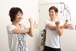 トレーナーが身体をチェックし、個々に合ったストレッチをおこないます。